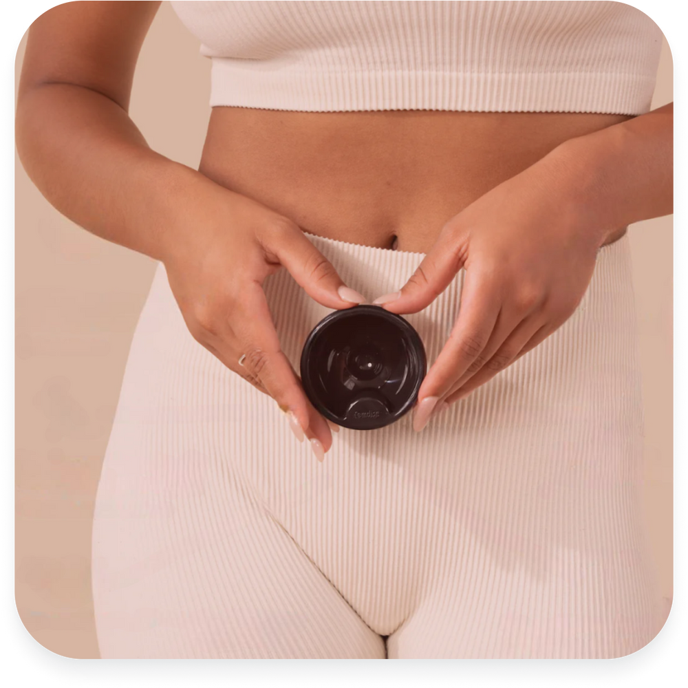Die meisten herkömmlichen Periodenprodukte – wie Tampons, Tassen oder auch manche Scheiben – sitzen im mittleren bis unteren Vaginalkanal. Genau dort, wo viele sensible Nervenenden verlaufen und der Körper durch Muskeln und Bewegung besonders aktiv ist. Tampons und Cups sitzen meist zu tief im Vagina-Kanal, wo Druck, Bewegung und Schleimhautreizungen häufig sind.