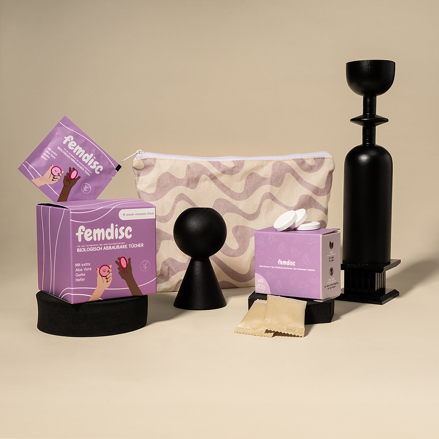 Ein durchdachtes Set, mit dem du deine Menstruationsscheibe oder -tasse überall pflegen kannst. Nie wieder Planungsstress wegen deiner Periode auf Reisen oder in öffentlichen Toiletten.