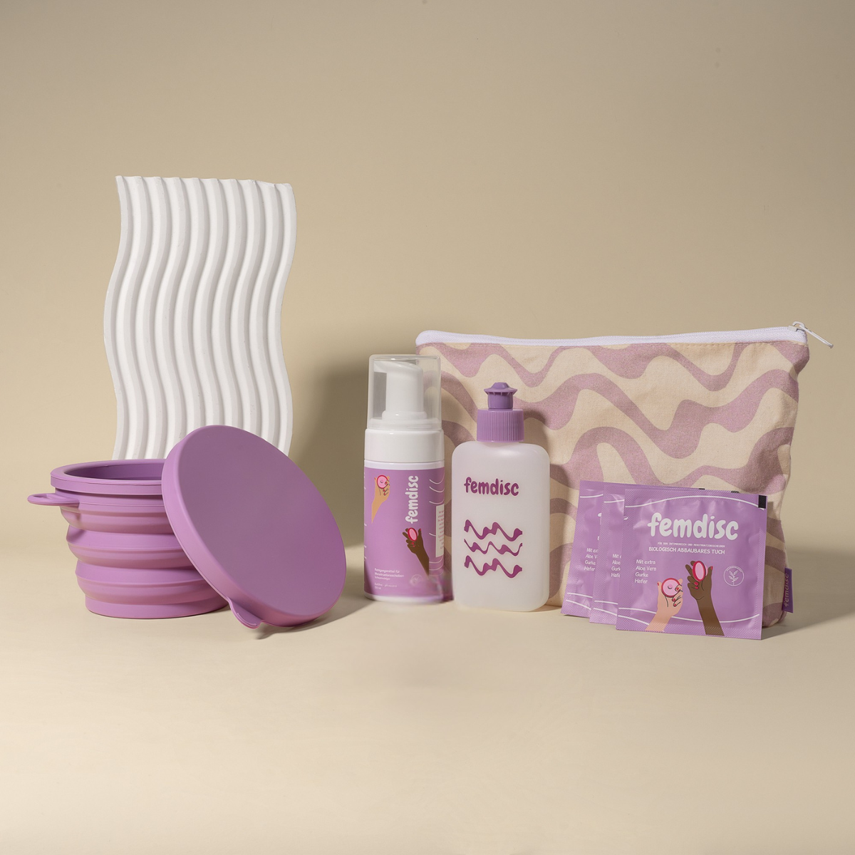 Das femdisc Reise-Kit wurde speziell entwickelt, um deine wiederverwendbaren Periodenprodukte auch unterwegs einfach und hygienisch zu reinigen und zu sterilisieren – egal, wo du dich befindest. Nie wieder musst du deine Reisepläne wegen deiner Periode umstellen.